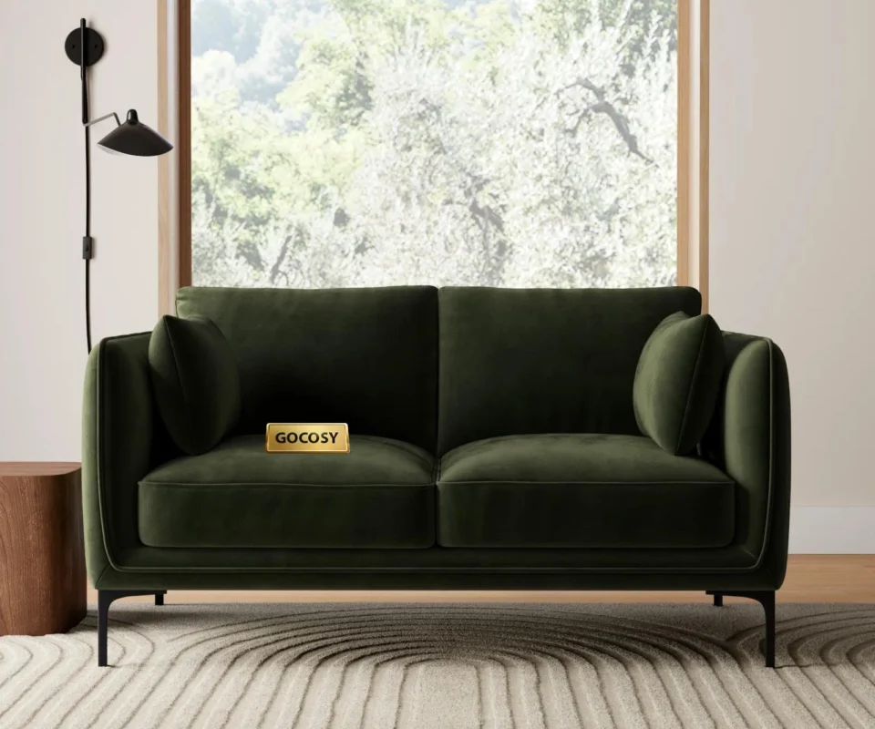 Snoffia Forest Green Loveseat – Plush Cushion 2-Seater Sofa with Modern Frame Design