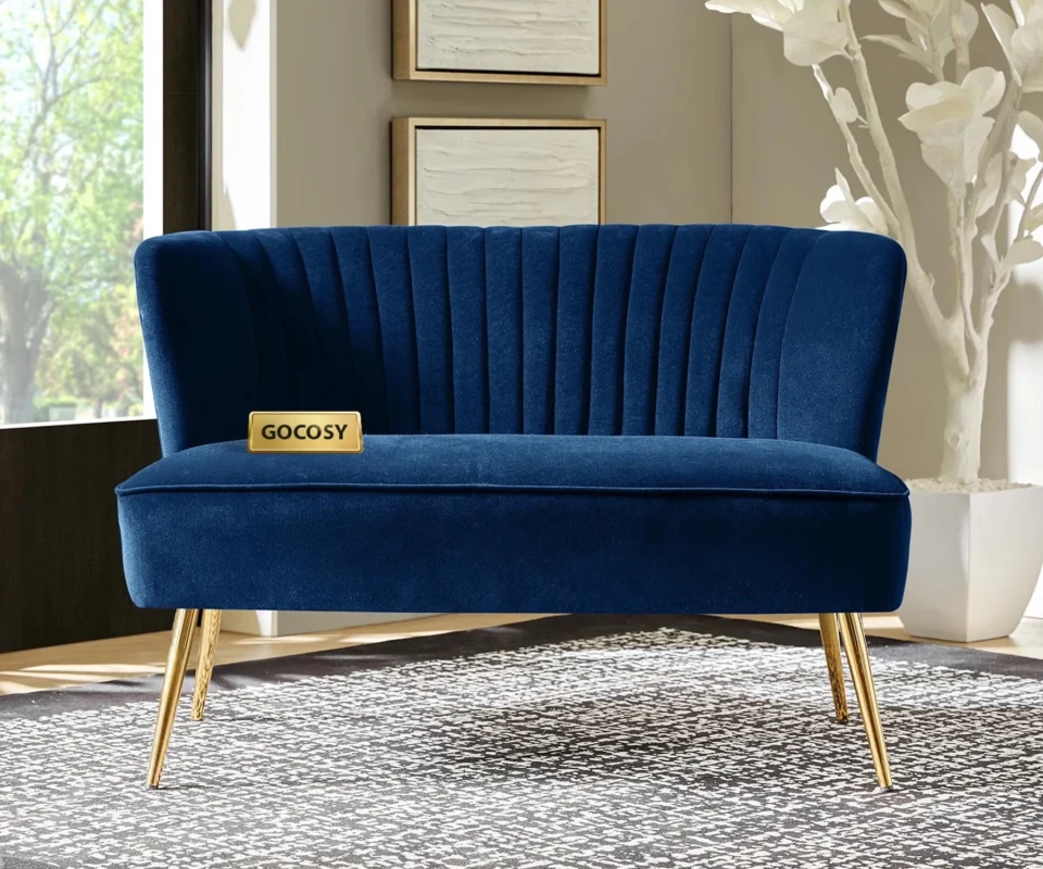 Canyonex Royal Blue Velvet Loveseat – Channel Tufted Back with Gold Legs